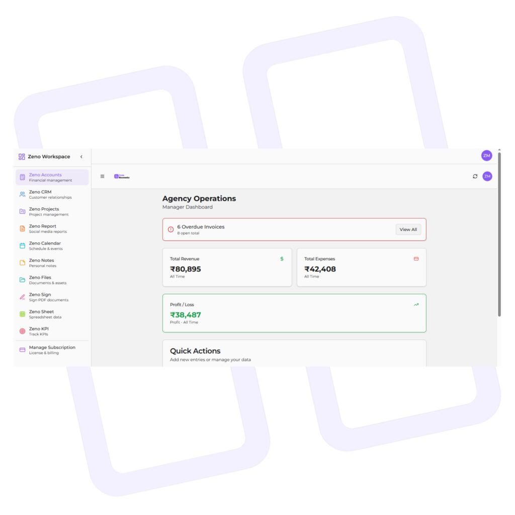 Zeno Workspace helped us finally centralize our client operations. Earlier, our CRM, reporting, and task tracking were all separate. Now everything is structured in one dashboard. The KPI and Projects modules especially improved our internal accountability.